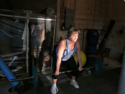 sunday morning the girls at ghetto were jacked! got their deadlifts up to 105! here's cath warming up .....